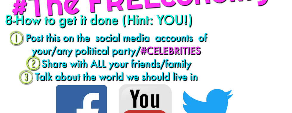 Hi! Wanna start #TheFREEconomy and do all the things in that first pic below? Take a look at it, and now strap in. You're about to be presented with the most inspiring, ambitious, and surprisingly, unbelievably, simple and practical way to solve society's (global) problems. In this humble, superhero's opinion, this is what everybody should be working on!