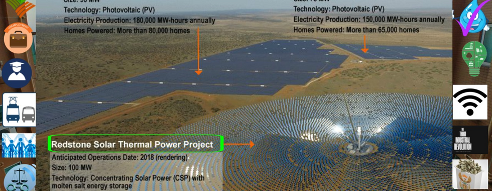 Let's demolish all the townships with their dirty, cold, inhospitable shacks, and relocate all the residents to a tiny section of the area previously covered by dangerous, unsightly corroded metal sheets, and electrical wiring to a piece of land just 10% of what they all took up previously, i.e. drastically reduce their physical footprint, and put them up in modern residential skyscrapers built (maybe with the help of Tesla's robots!) efficiently out of steel & solar panel-infused glass and "block batteries" (already developed by Elon's SolarCity), that not only won't need Eskom but might actually be able to compensate for it by supplying excess (abundant) solar energy to the grid.